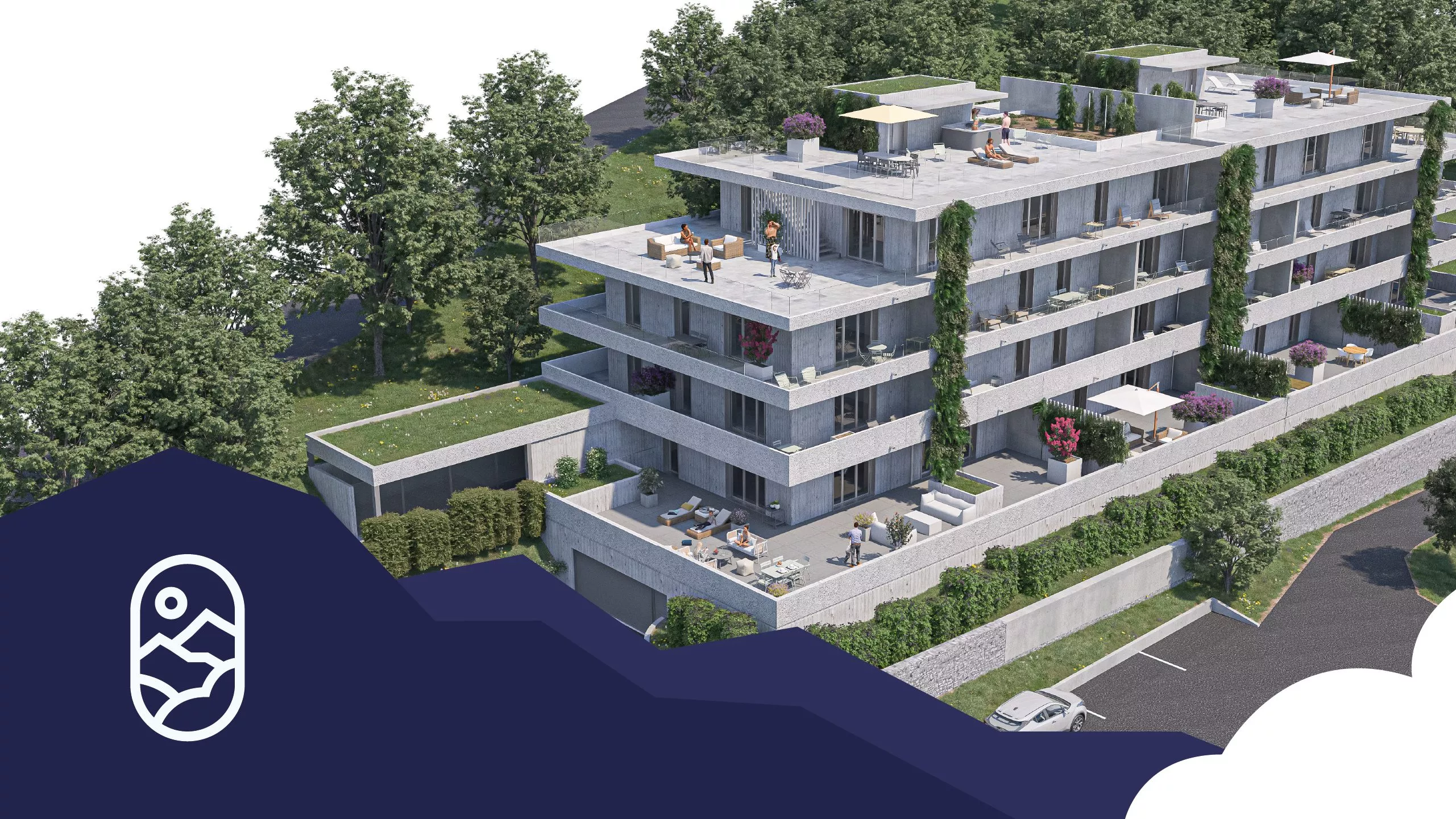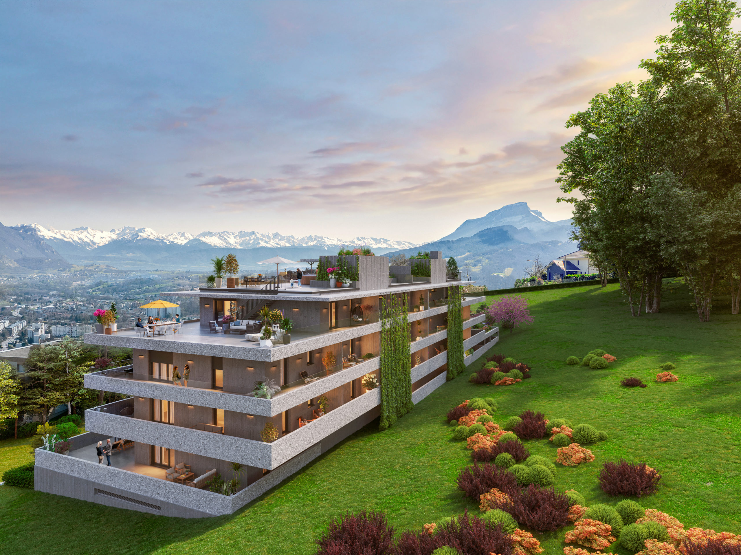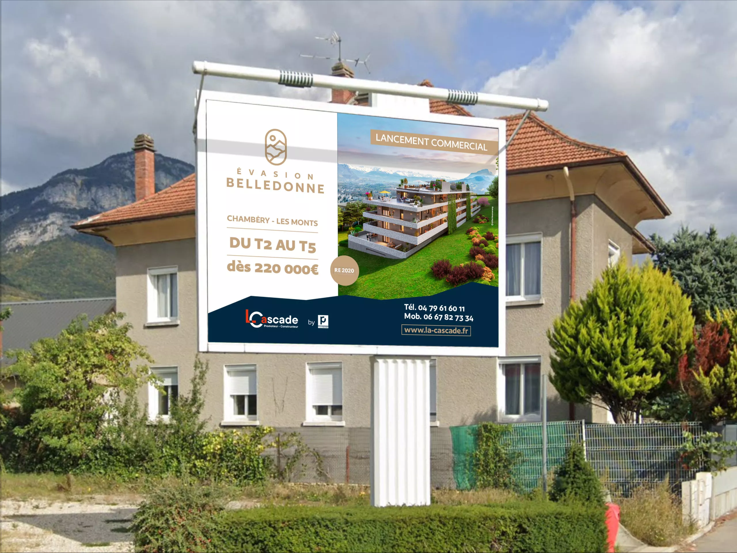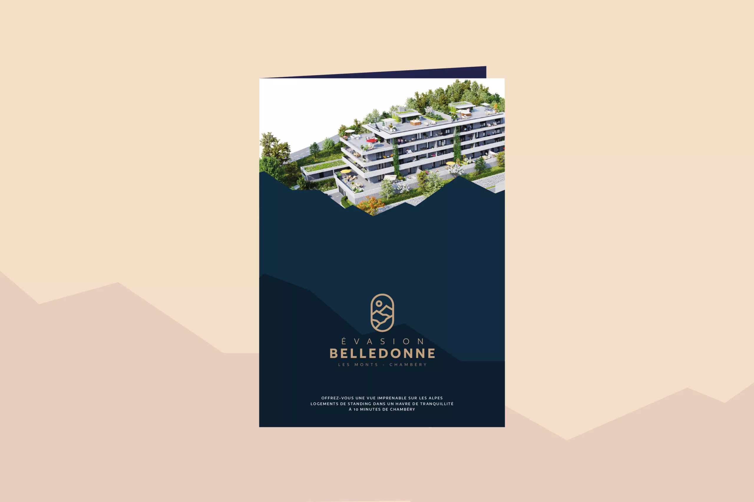 Mais l’aventure ne s’est pas arrêtée là… L’agence a également eu l’opportunité de travailler sur l’identité visuelle d’Évasion Belledonne, un programme immobilier mené par La Cascade, branche du groupe Pelletier spécialisée en promotion-construction immobilière.